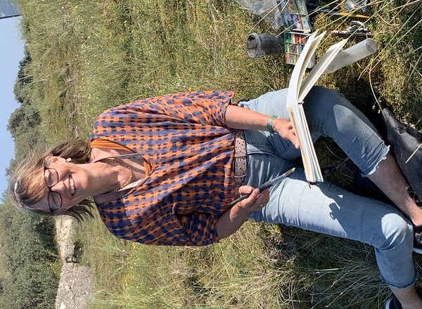 Vor Ort setze ich meine Eindrücke in expressive Malerei und Zeichnung mit Kohle, Kreide, Gouache und Tusche um. Landschaft ist spürbar und spielt atmosphärisch eine Rolle. Meine Figuren - Menschen und Tiere sind als Teil der Natur...