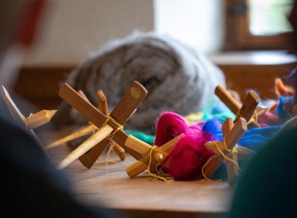 Offenes Mitmachangebot, ohne Anmeldung - einfach vorbeikommen und mitmachen! Probiert verschiedene Techniken aus - zum Beispiel Wolle spinnen!